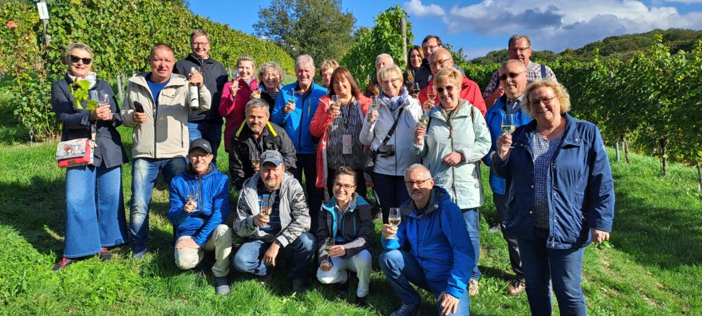 Zweite Station war dann der beschauliche Ort Diesbar-Seußlitz am Ufer der Elbe. Nachdem wir uns im Gasthof „Zum Roß“ beim Mittagessen gestärkt hatten, ging es weiter zum Weingut Jan Ulrich. Dort erhielten wir einen interessanten Einblick in die Entwicklung des Weinguts und die Geheimnisse des Weinanbaus sowie der Herstellung der verschiedenen Weinsorten. Gleich im Weinkeller und später auf dem Weinberg durften wir natürlich auch einige der leckeren Weine verkosten. Anschließend sind wir im Shop noch auf Einkaufstour gegangen, bevor wir wieder die Heimreise antraten.