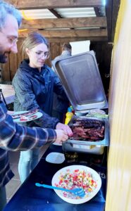 Es gab allerlei Leckeres vom Grill, dazu einige Salate und frisch gebackene Pizzen – für jeden Geschmack war etwas dabei – und natürlich auch ein „Bierchen“ für die Herren oder ein „Piccolöchen“ für die Damen. Nach getaner sportlicher Betätigung und dem leckeren Essen gesellten sich alle zu einer großen Runde zusammen. Es wurde zum Abend dann etwas kühler und so wurden Decken ver- und Jacken geteilt.