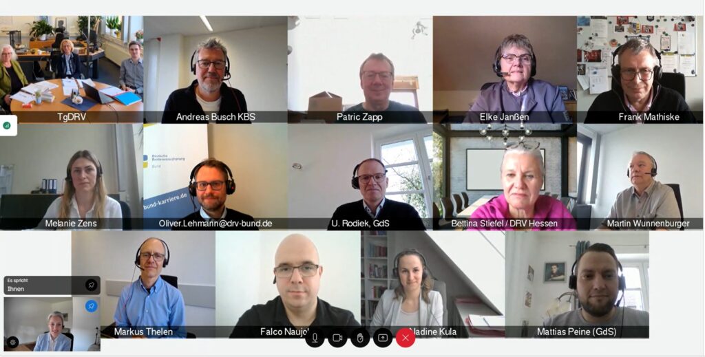 Am 26. März sind die Mitglieder der Tarifkommission der GdS mit den Vertreter/innen der TgDRV, DRV KBS und DRV Bund digital zu einem Tarifgespräch zusammengekommen. Dabei haben sie an den an den letzten gemeinsamen Termin im Herbst 2025 angeknüpft, um weiter auszuloten, mit welchen Themenschwerpunkten das Tarifrecht der Deutschen Rentenversicherung weiterentwickelt werden sollte.