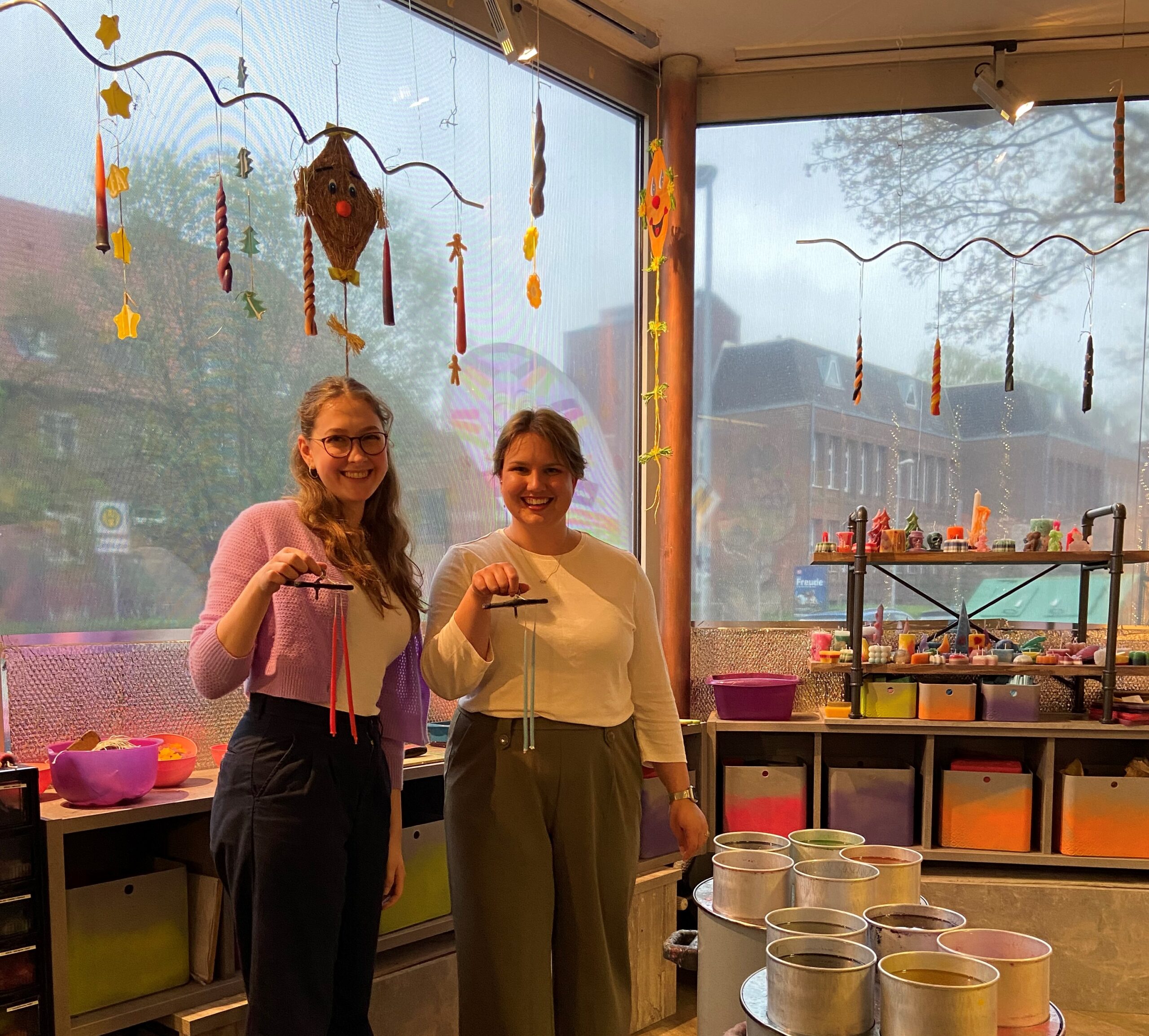 „Kleine Kerzen – großes Design“, so hieß der Kurs fürs Kerzenmachen am 11. April 2024, an dem die GdS-Jugend Niedersachsen teilgenommen hat. Gegen Nachmittag ging es gemeinsam nach Ahrensburg zum Kerzenziehen. Dort angekommen hat uns eine liebe Kerzenmacherin freundlich empfangen und uns in die Welt des Kerzenmachens mitgenommen. Obwohl die Werkstatt auf den ersten Blick klein wirkte, hat uns die Vielfalt der Kerzen total überrascht. Von Ostern bis Weihnachten gab es so ziemlich alles in der Kerzenwerkstatt, selbst viele Tiere, Pflanzen und verschiedene Figuren konnten wir aus Wachs vorfinden. Was alles mit Wachs möglich ist, ist wirklich unglaublich.