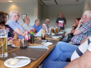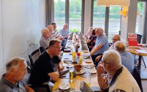 Das Treffen begann mit einem gemeinsamen Mittagessen. Gelegentlich fuhren auch große Containerschiffe direkt am Restaurant vorbei. Der Vorsitzende des Kreisverbandes Cay Peetz stellte unter anderem den Notfallordner des dbb vor. Ein weiteres Thema waren Informationen zum Kreisverband. Eigens aus Itzehoe angereist war der Vorsitzende des Landesverbandes Schleswig-Holstein Uwe Primus. Als Gast des Seniorentreffens berichtete Kollege Primus unter anderem über Änderungen im Landesverband und zur Tarifpolitik. Die Zeit ging sehr schnell vorbei und so endete der gesellige Nachmittag nach über drei Stunden.