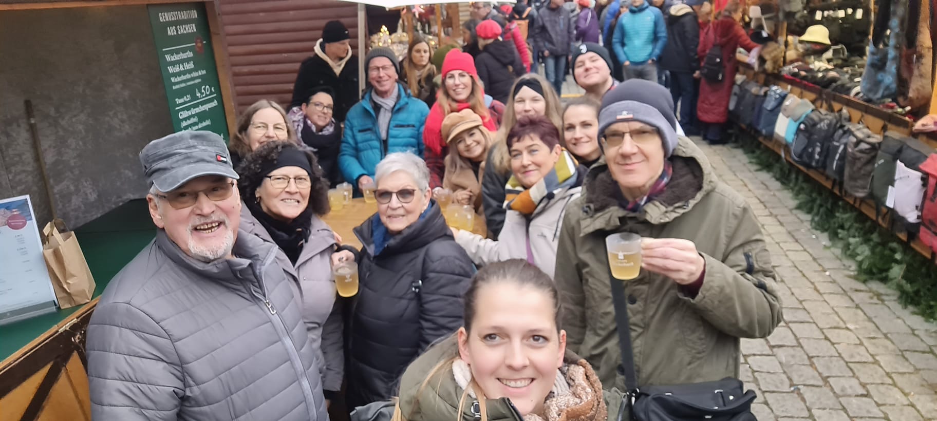 Für den 13. Dezember 2025 hatte der GdS-Ortsverband Erfurt und Umland seine Mitglieder wieder zu einem Besuch des Weihnachtsmarktes in Gera eingeladen. In diesem Jahr ging die Fahrt mit dem Zug von Erfurt über Weimar nach Gera. Am Stand von Schloss Wackerbarth haben wir mit dem ein oder anderem Heißgetränk den Tag in gemütlicher Runde begonnen, dann konnten alle im eigenen Tempo den Weihnachtsmarkt erkunden oder noch letzte Geschenke einkaufen. Die Märchen, die überall in der Stadt versteckt waren, haben auch die Erwachsenen begeistert. „Es hat uns gefallen“ und „Gern kommen wir im nächsten Jahr wieder“ – das sind Eindrücke, die uns natürlich sehr freuen.