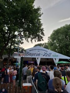 Am 21. Juni 2025 war es wieder so weit: Unter dem Motto „Freundschaft – Austausch – Geselligkeit“ traf sich die GdS-Jugend Schleswig-Holstein mit 14 Mitgliedern im festlich geschmückten Bayernzelt an der Kiellinie, um gemeinsam einen ausgelassenen Abend zum Auftakt der Kieler Woche zu verbringen. Pünktlich um 18 Uhr versammelten wir uns vor dem Eingang des Zeltes und gingen dann zusammen hinein.