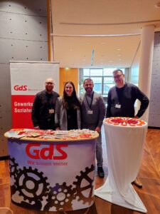 Am 4. Dezember 2025 fand wieder der traditionelle Weihnachtsmarktbesuch des Regionalverbandes Halle/Süd und des Kreisverbandes Leipzig in Halle statt. Doch bevor es losging, stand noch ein weiteres Event auf dem gewerkschaftlichen Terminplan: die Jugend- und Auszubildendenversammlung der Deutschen Rentenversicherung Mitteldeutschland, bei der die GdS mit einem Stand vertreten war. In seinem Grußwort hob der Regionalverbandsvorsitzende Christoph Büchner die Notwendigkeit und die Vorteile einer starken Fachgewerkschaft hervor, unterstrich aber auch die Gemeinschaft, die die GdS besonders ausmacht.