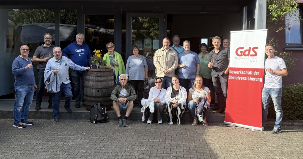 „Wenn Engel reisen, lacht der Himmel“ und genau so war es am 12. September 2025. Mit einem gecharterten Reisebus hatte sich der GdS-Regionalverband Pfalz bei herrlichem Freitagnachmittagswetter über die Zwischenstationen Landau in der Pfalz, Neustadt an der Weinstraße, Speyer und Ludwigshafen am Rhein auf den Weg zur kulinarischen Weinprobe nach Rheinhessen gemacht.