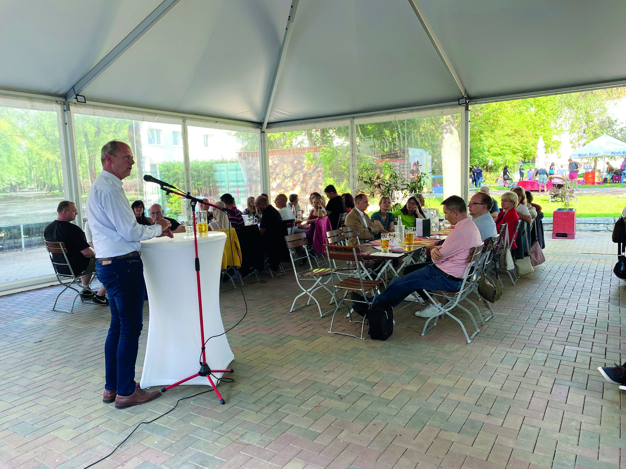 Über 60 GdS-Mitglieder des Regionalverbandes Magdeburg/Nord waren am 6. September dem Aufruf des Vorsitzenden Torsten Grabow zum GdS-Sommerfest 2021 im Nordpark gefolgt. Nach anderthalb Jahren Pandemiezeit und den damit verbundenen Entbehrungen entsprach die Einladung auch dem Wunsch der GdS-Mitglieder in der Region Magdeburg, den Sommer mit einer Präsenzveranstaltung und nicht in Form einer audiovisuellen Zusammenkunft zu verabschieden. In einem großen Festzelt im Freien auf der Anlage des „Familienhauses Magdeburg“ fanden die Teilnehmer die idealen Bedingungen für ein Sommerfest unter Einhaltung der geltenden Hygienevorschriften.