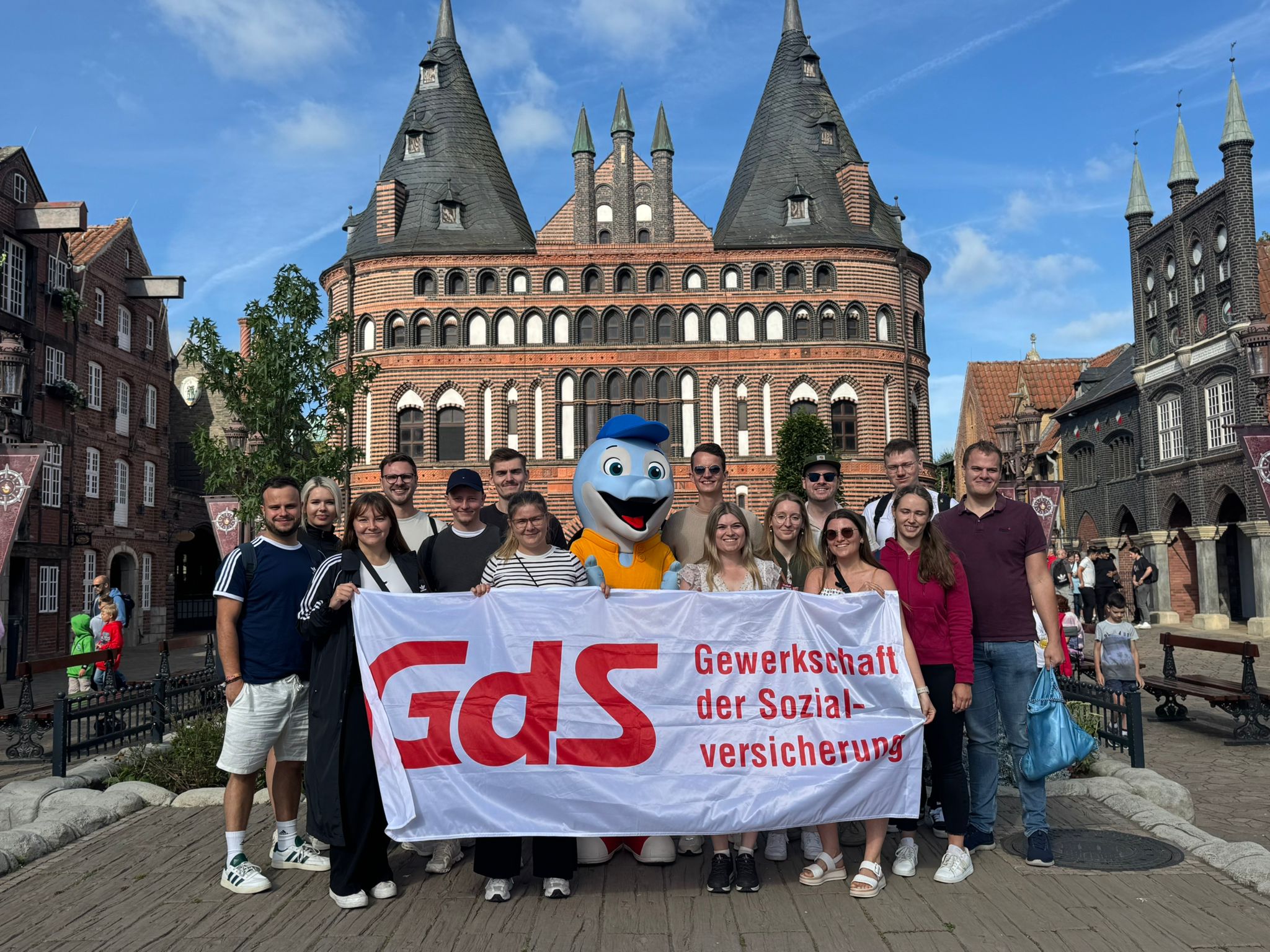 Am 16. August 2025 unternahm die GdS-Jugend Schleswig-Holstein mit 15 Teilnehmerinnen und Teilnehmern aus fünf verschiedenen Sozialversicherungsträgern (AOK NordWest, Deutsche Rentenversicherung, Agentur für Arbeit, Jobcenter und IKK) einen Ausflug in den Hansa-Park – Deutschlands einzigem Erlebnispark am Meer im Ostseebad Sierksdorf bei Lübeck. Dieser bietet mehr als 125 Attraktionen.