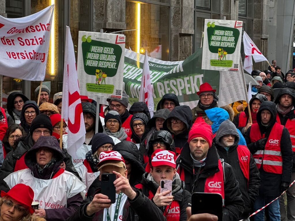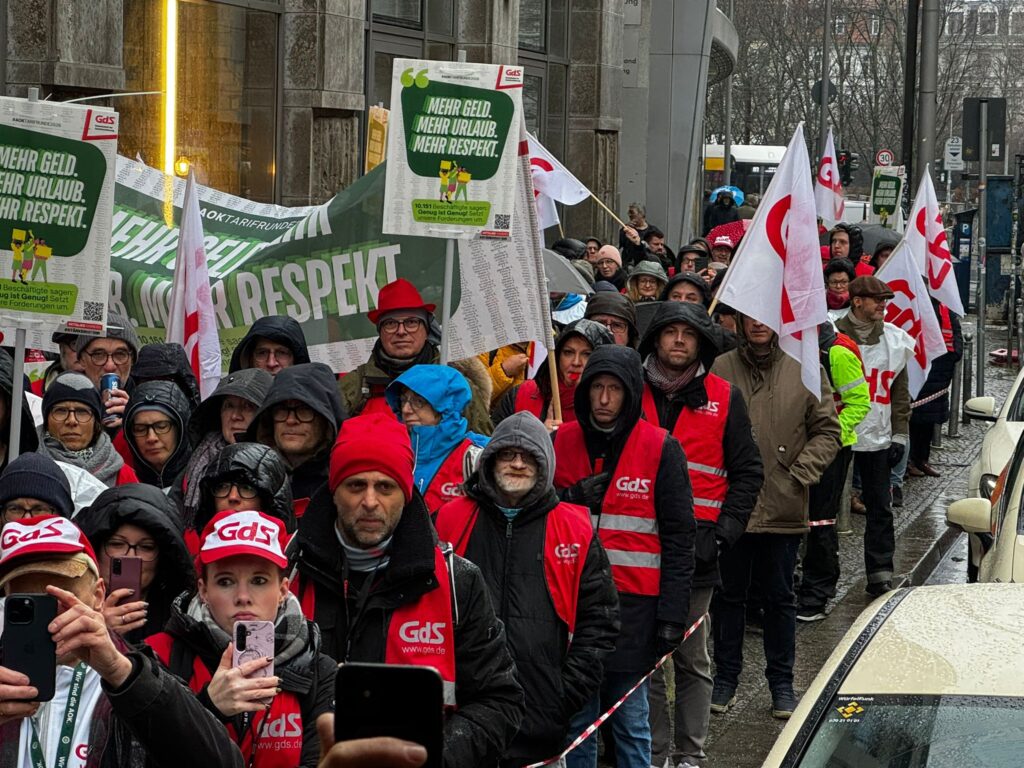 Die Teilnahme an Demonstrationen und Warnstreiks ist Ihr verfassungsmäßig geschütztes Recht. Alle Beschäftigten und Auszubildenden, die von der GdS dazu aufgefordert werden, dürfen sich am Warnstreik beteiligen – unabhängig davon, ob sie der GdS oder einer anderen Gewerkschaft angehören oder nicht organisiert sind. Maßregelungen des Arbeitgebers wegen der Streikteilnahme sind nicht zulässig. Sollte jemand Sie zur Arbeit auffordern oder Ihnen Nachteile ankündigen, verweisen Sie ihn an die Streikleitung!