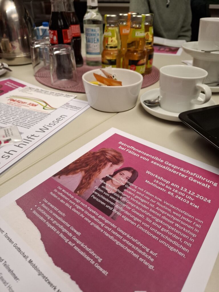 Für Freitagnachmittag, den 13. Dezember 2024 hatte der dbb-Landesbund Schleswig-Holstein gewerkschaftliche Funktionsträger(innen) zu einem Workshop mit dem Titel „Betroffenensensible Gesprächsführung bei Fällen von sexualisierter Gewalt“ nach Kiel eingeladen. Die GdS-Jugend Schleswig-Holstein wurde durch den Landesjugendleiter Daniel Peetz vertreten. Referent war Torsten Gottschall vom Mobbingnetzwerk Nord.